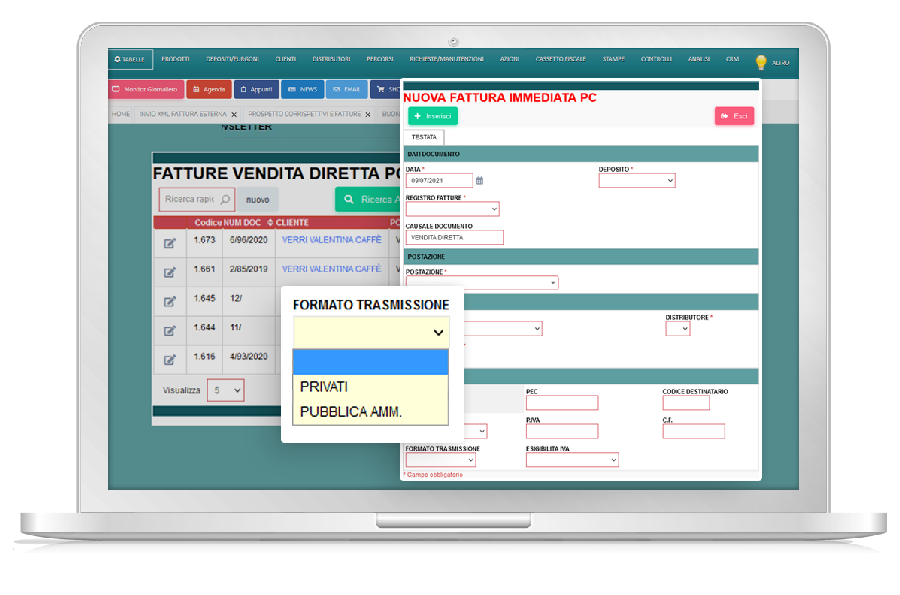 Grazie a Vending Manager è infatti possibile gestire la fatturazione elettronica mediante uno strumento completo, gratuito e integrato col sistema gestionale concepito per generare fatture elettroniche sotto forma di file xml, trasmettendole in maniera diretta, e conservandone copia digitale all’interno della piattaforma. Essendo inoltre basato su un’interazione “certificata” con SdI di tipo “web service”, il gestionale aziendale Vending Manager fornisce gratuitamente un proprio codice destinatario che permette la ricezione delle fatture, fornendo una serie di notifiche relative all’intero processo di trasmissione/ricezione.